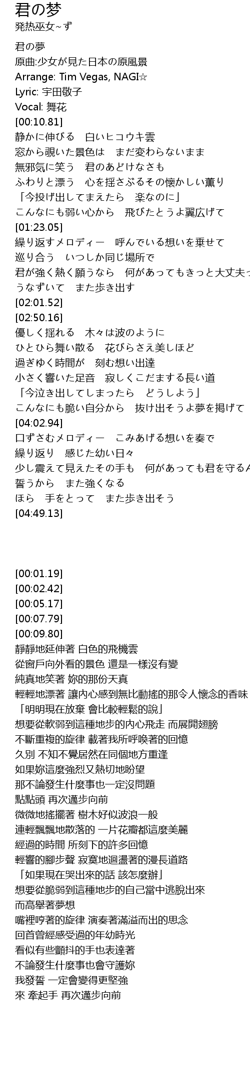 | [00:09.80] | Vocal: 舞花 |
