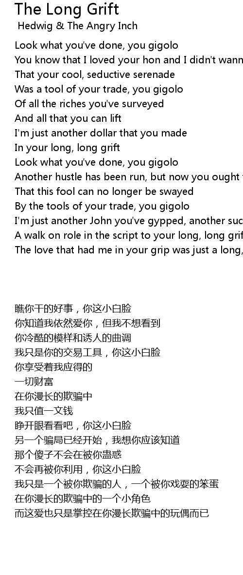 The love that had me in your grip was just a long, long grift |