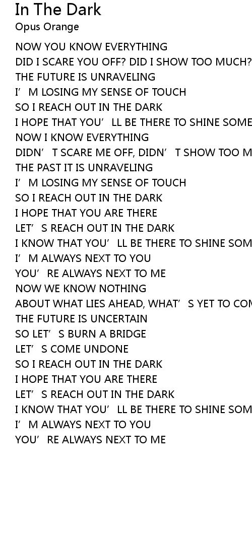| SO I REACH OUT IN THE DARK | |