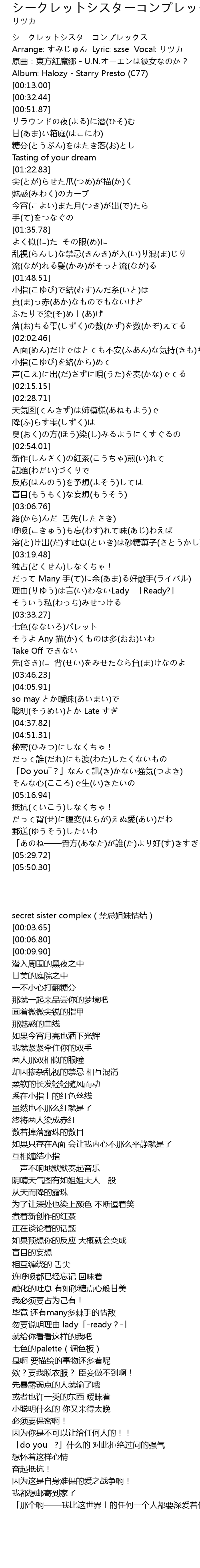 | [00:00.53] | secret sister complex(禁忌姐妹情结) |