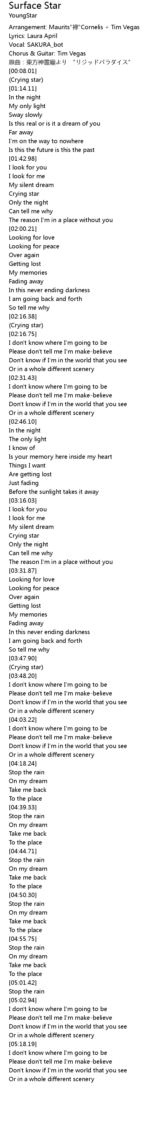 | [00:43.76] | Crying star |