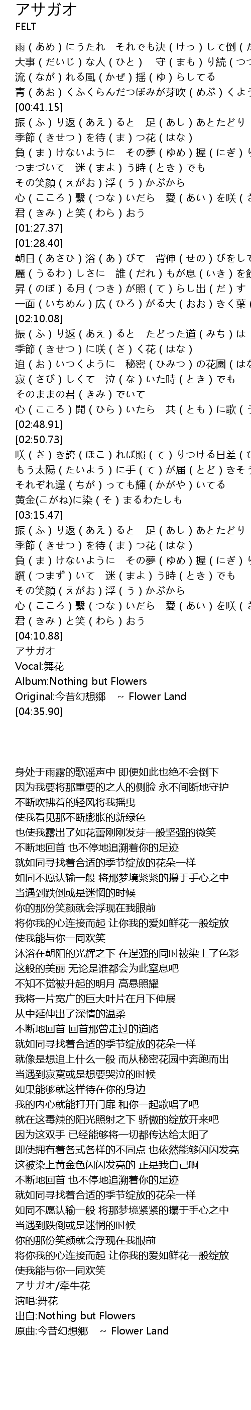 | [04:16.25] | アサガオ |