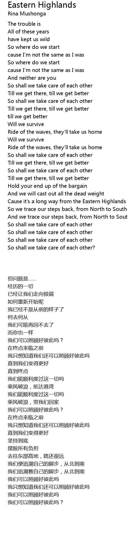 Cause it's a long way from the Eastern Highlands |