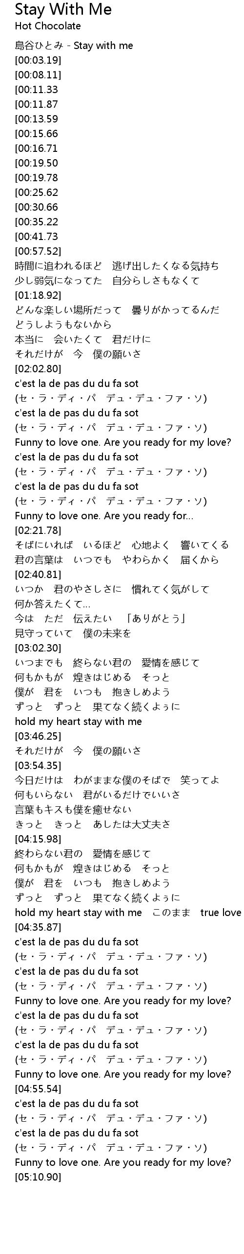| [00:01.12] | 島谷ひとみ - Stay with me |