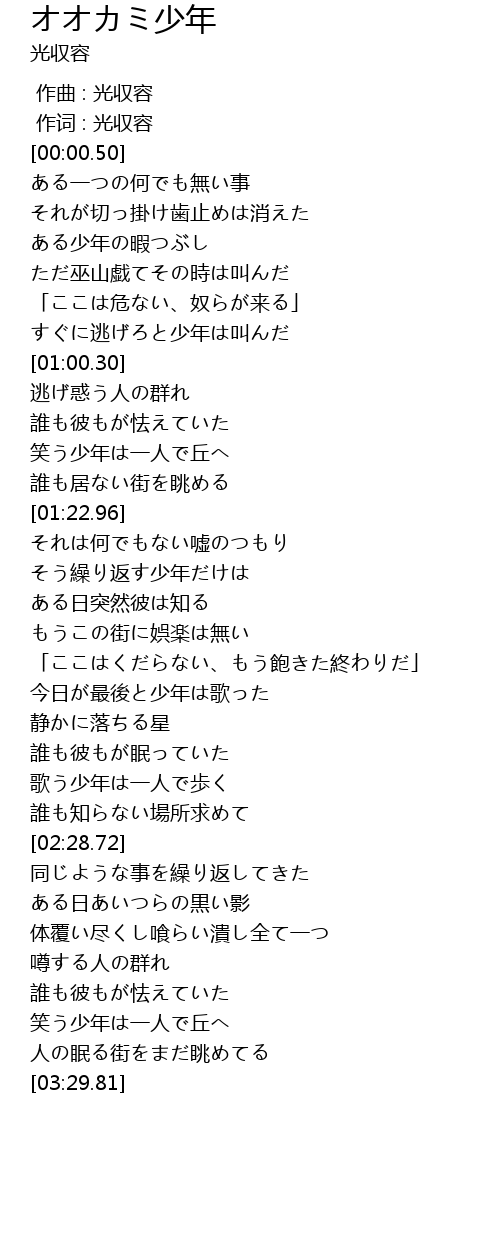 | [02:02.22] | 今日が最後と少年は歌った |