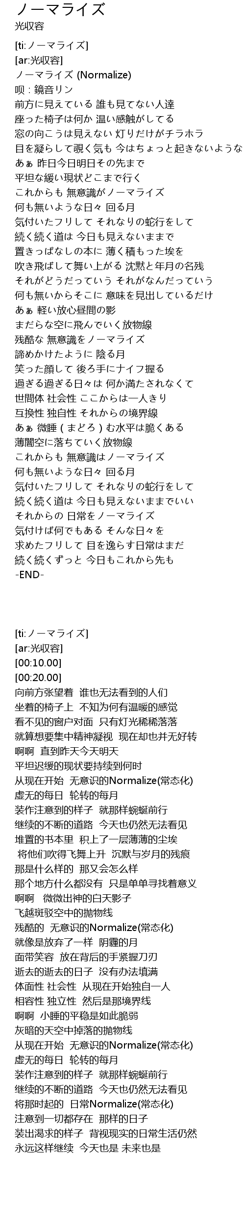 | [03:19.06] | 从现在开始 无意识的Normalize(常态化) |