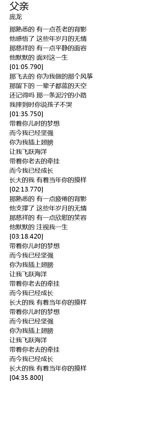 | [00:35.820] | 那熟悉的 有一点苍老的背影 |