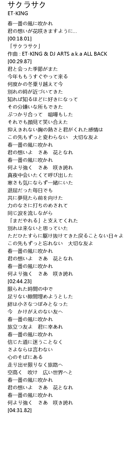 | [00:24.87] | 作曲∶ET-KING & DJ ARTS a.k.a ALL BACK |