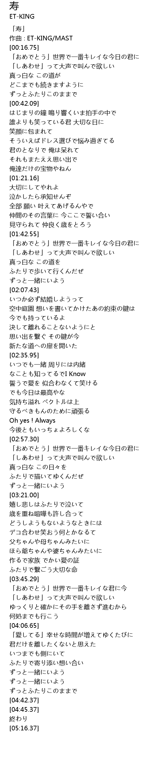 | [03:45.99] | 「おめでとう」世界で一番キレイな君に今 |