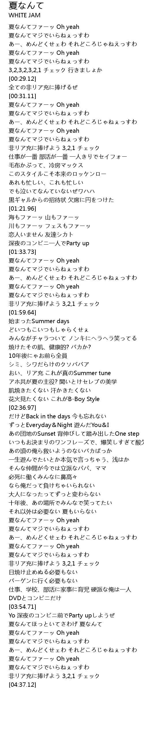 | [04:23.94] | 夏なんてファーッ Oh yeah |