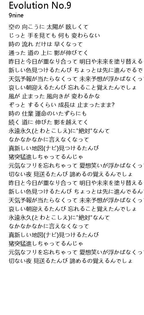 | 歌曲 | Evolution No.9 |