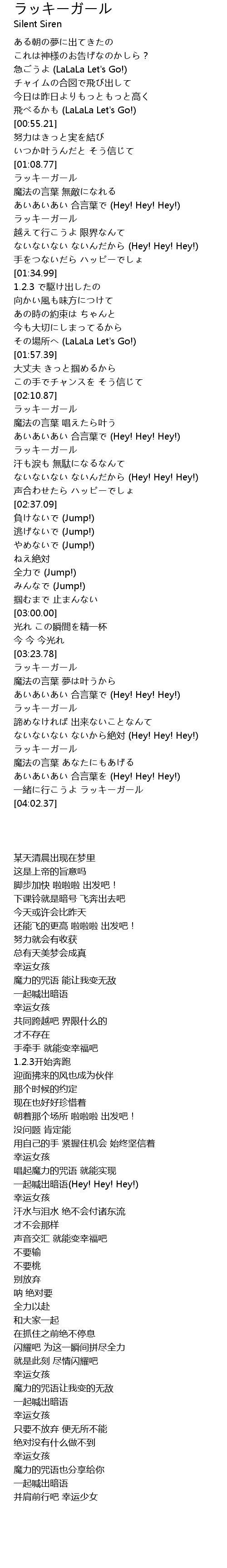 | [03:58.55] | 一緒に行こうよ ラッキーガール |