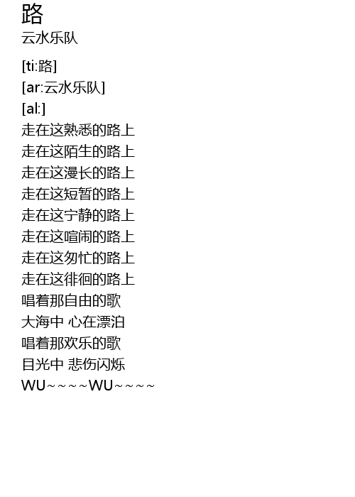 | [00:58.62] | zou zai zhe ning jing de lu shang |