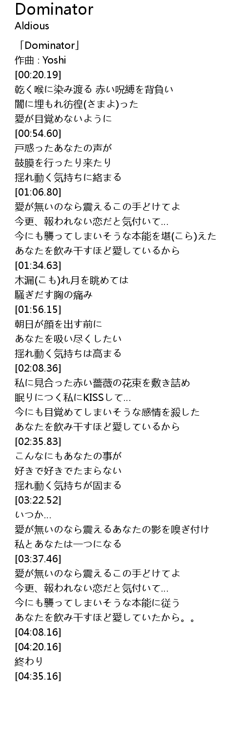 | [00:00.19] | 「Dominator」 |