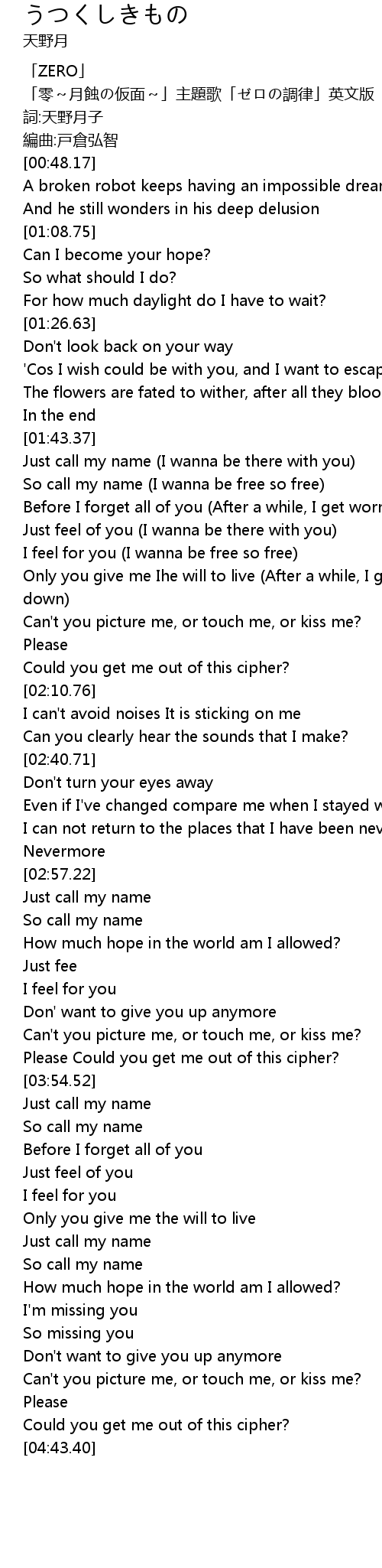 | [00:08.17] | 「零~月蝕の仮面~」主題歌「ゼロの調律」英文版 |