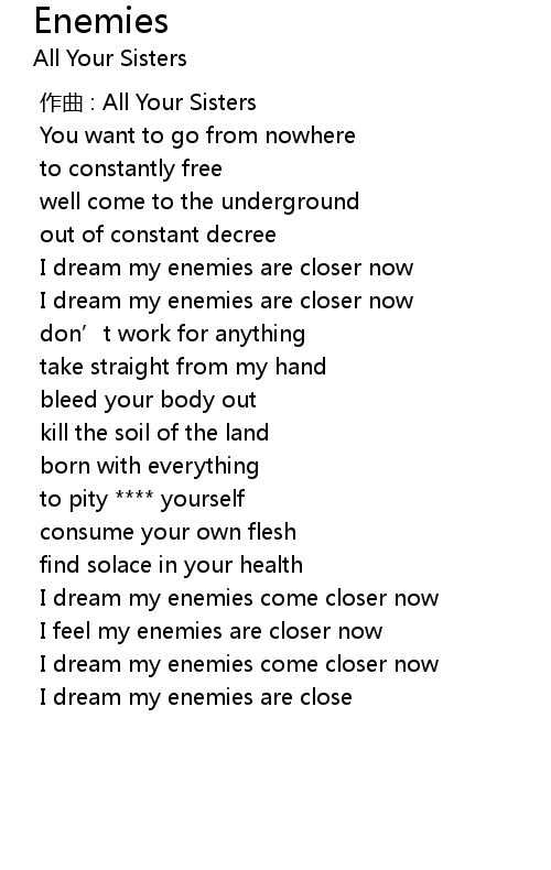 | [00:00.000] | zuò qǔ : All Your Sisters |