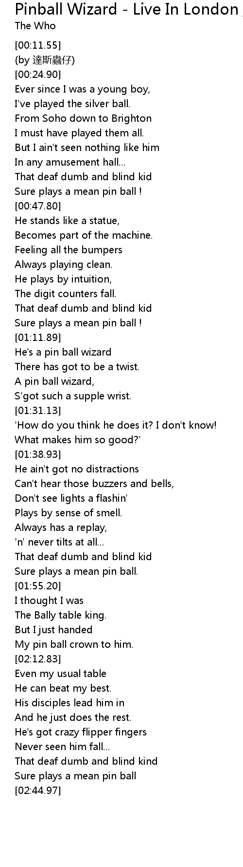 | [01:08.86] | Sure plays a mean pin ball ! |