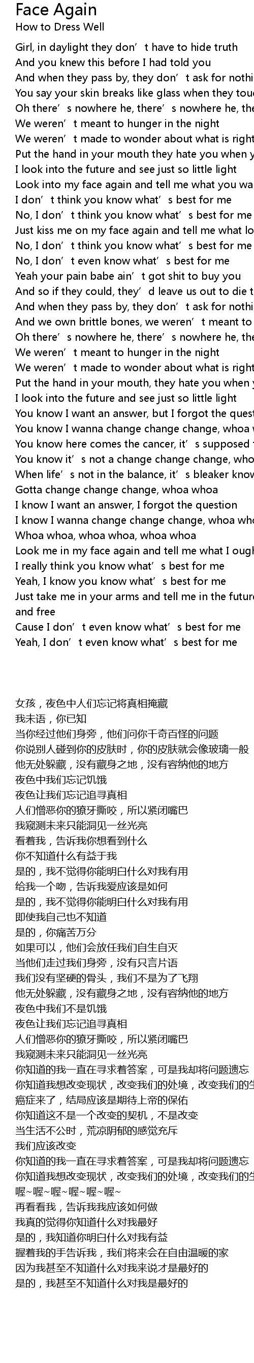 | 歌手 | How to Dress Well |
