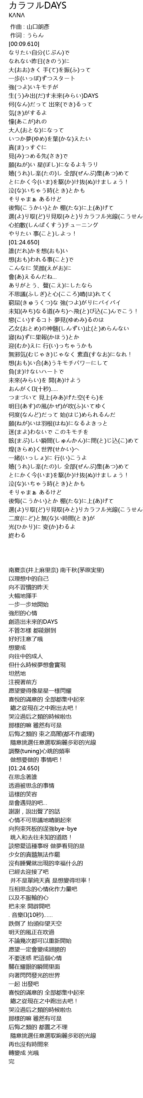 | [00:29.650] | 生(う)み出(だ)す未來(みらい)DAYS |