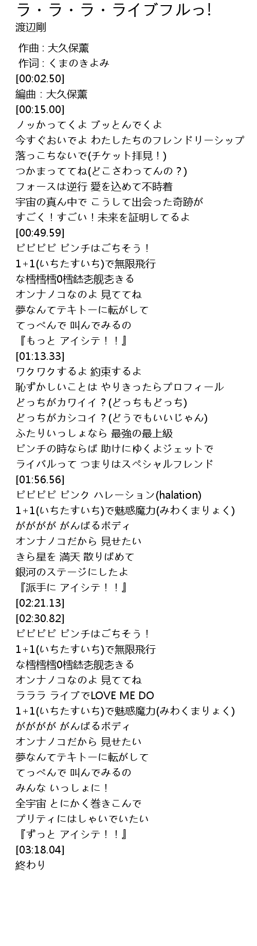 | [02:44.29] | ラララ ライブでLOVE ME DO |