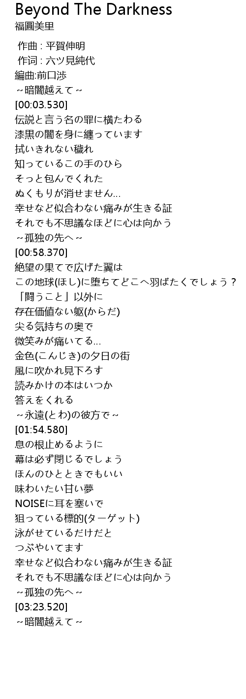| [03:07.100] | 幸せなど似合わない痛みが生きる証 |