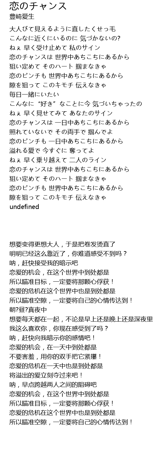 | [00:51.68] | 恋のチャンスは 世界中あちこちにあるから |