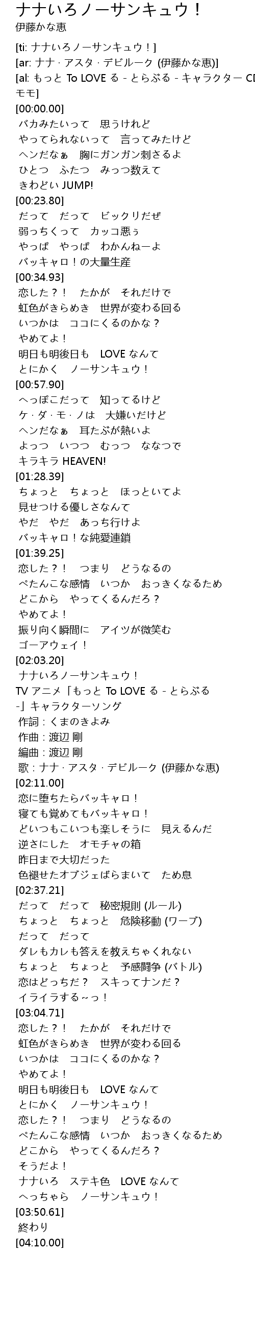 | [02:10.00] | 歌:ナナ · アスタ · デビルーク (伊藤かな恵) |