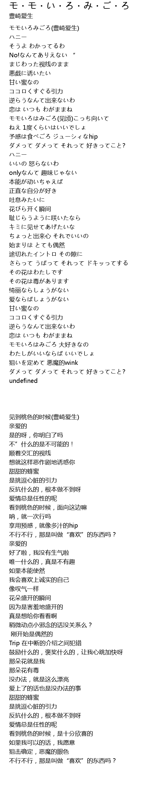 | [00:49.41] | モモいろはみごろ(见顷)こっち向いて |