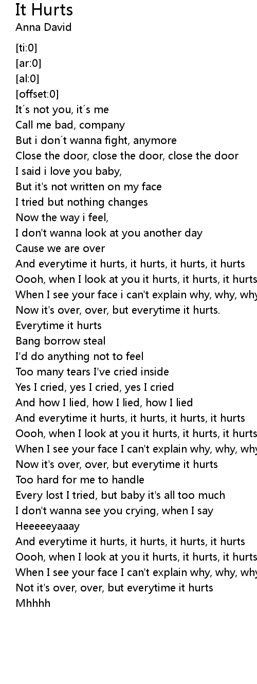 | [02:28.45] | And everytime it hurts, it hurts, it hurts, it hurts |