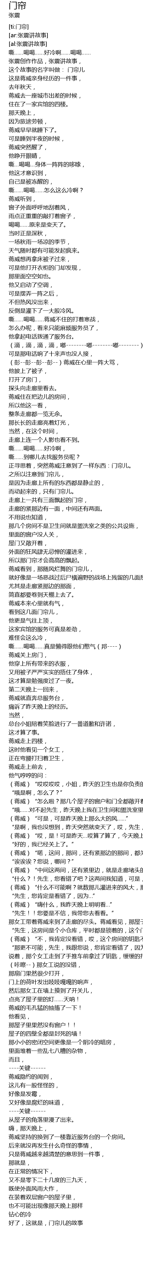 | [00:07.63] | 张震创作作品,张震讲故事, |