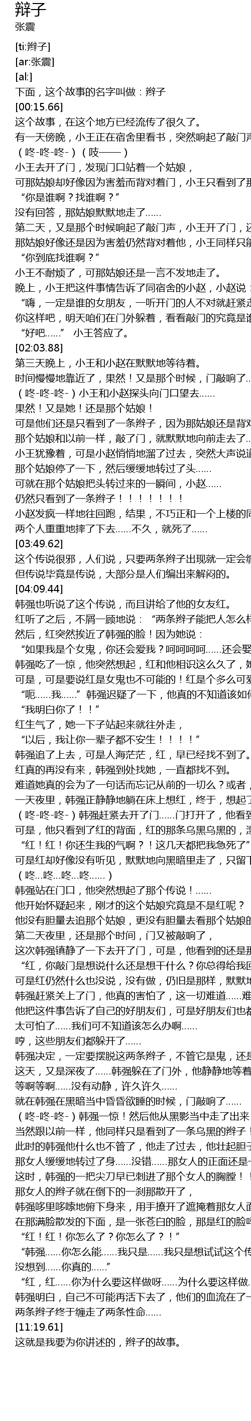 | [00:12.00] | xià miàn, zhè gè gù shì de míng zì jiào zuò: biàn zi |