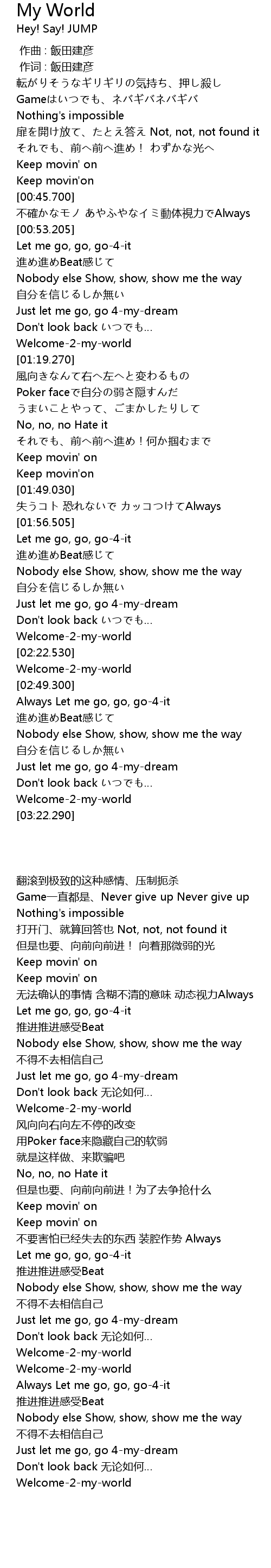 | [02:54.000] | Always Let me go, go, go-4-it |