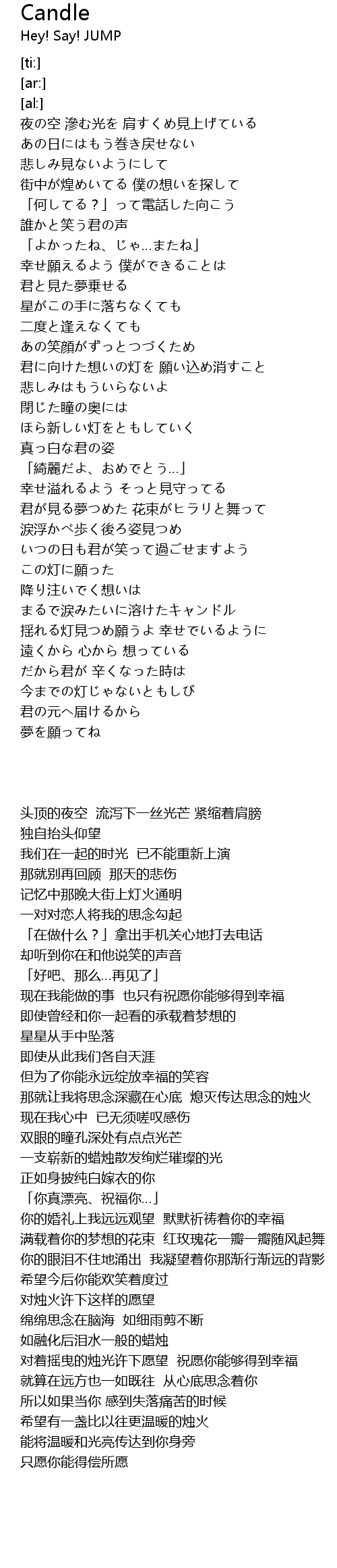 | [03:30.67] | 对着摇曳的烛光许下愿望 祝愿你能够得到幸福 |