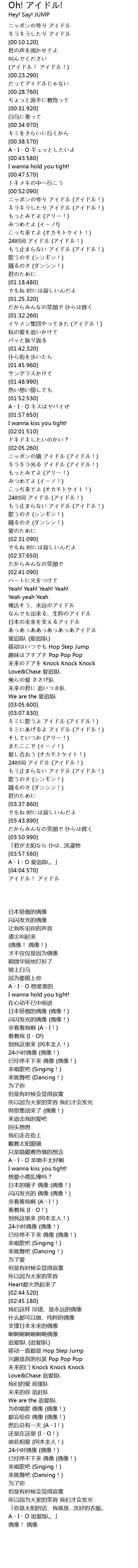 | [00:53.960] | 日本骄傲的偶像 (偶像!) |