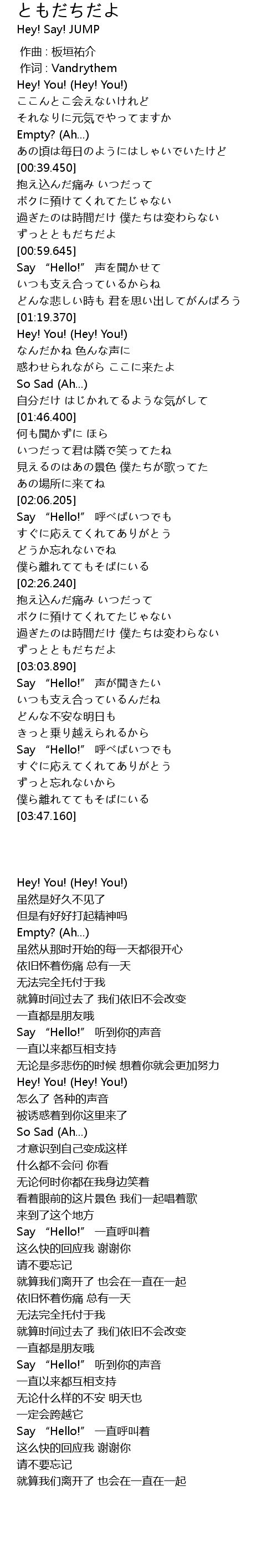 | [03:01.180] | ずっとともだちだよ |