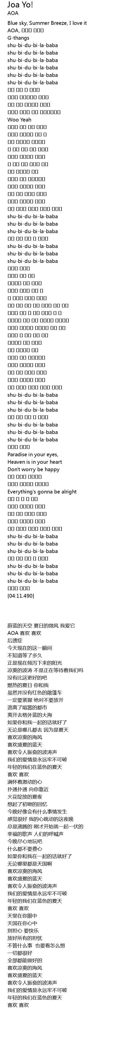 | [00:11.280] | AOA, 좋아요 좋아요 |