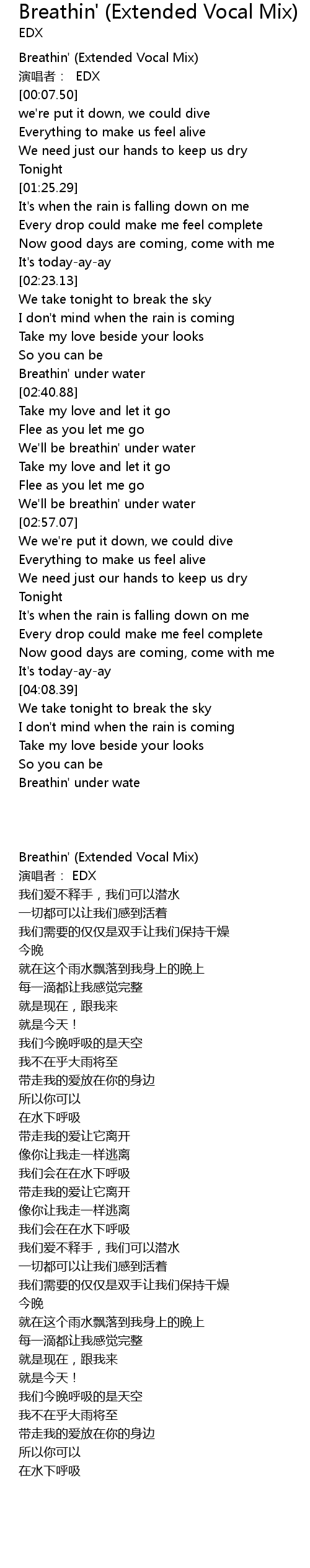 | [00:00.00] | Breathin' Extended Vocal Mix |