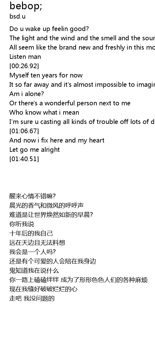 | [00:10.20] | All seem like the brand new and freshly in this mornin? |