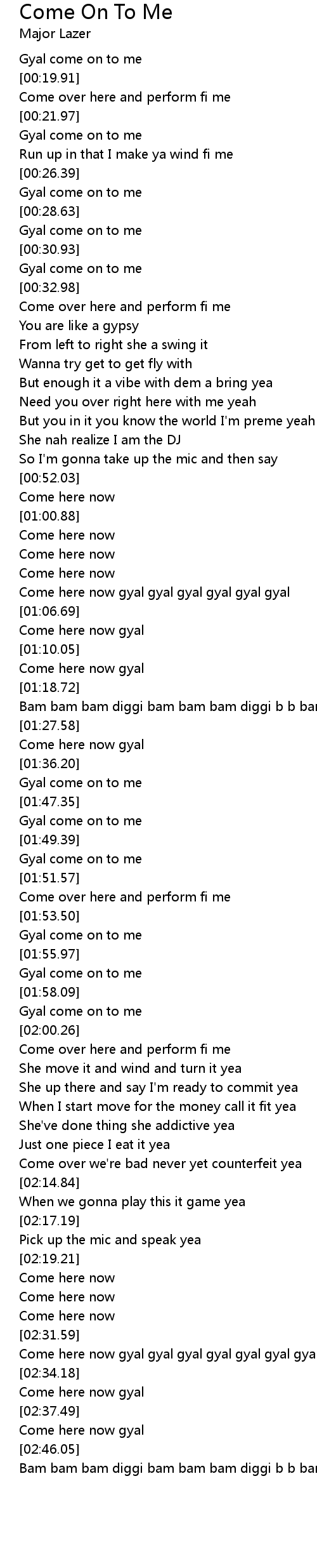 Come here now gyal gyal gyal gyal gyal gyal gyal |