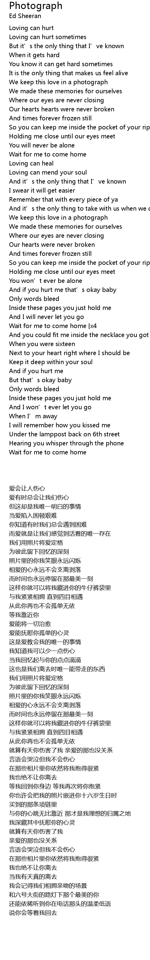 | 歌曲 | Photograph |
