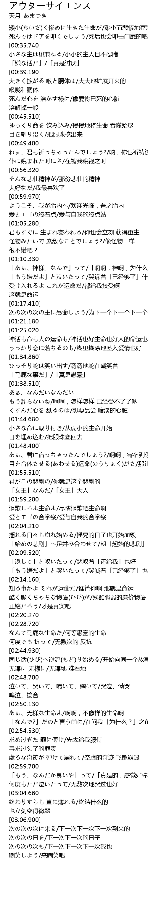 | [02:40.600] | なんて马鹿な生命だ/何等愚蠢的生命 |