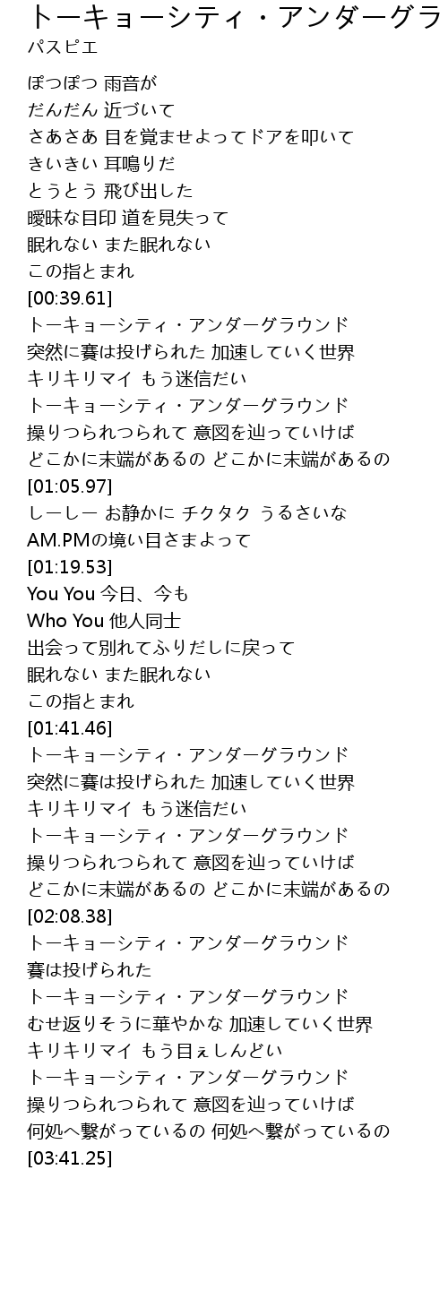 | [03:26.74] | トーキョーシティ・アンダーグラウンド |