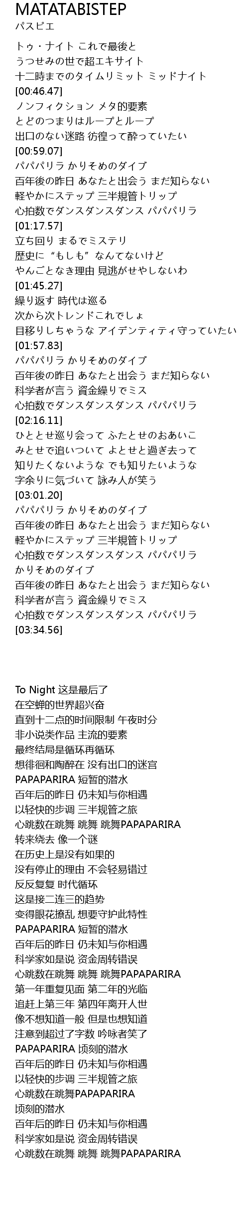 | [03:14.76] | 心跳数在跳舞PAPAPARIRA |