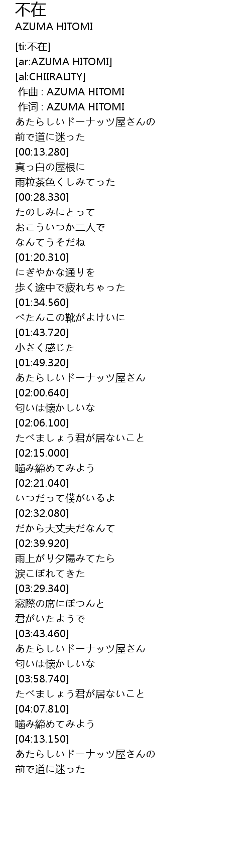 作词 : AZUMA HITOMI |
