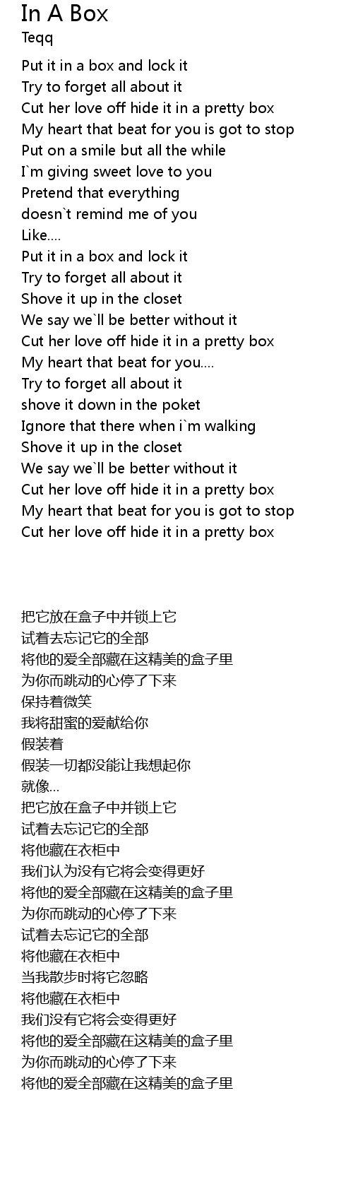 Cut her love off hide it in a pretty box |