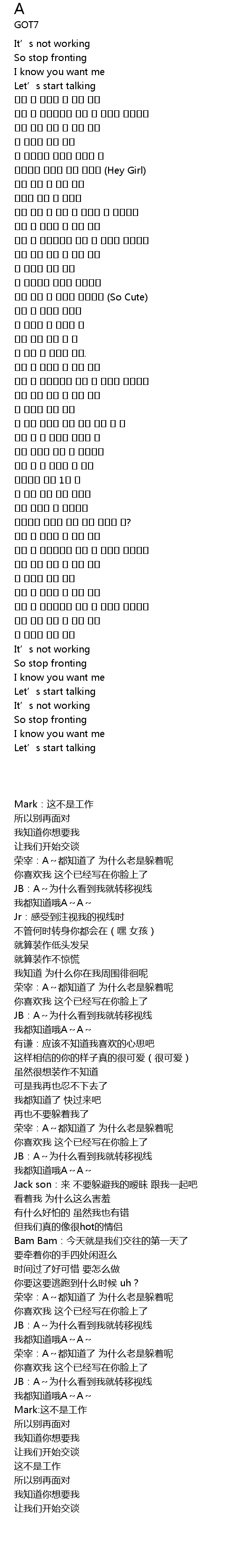 | [00:18.920] | JB:A~为什么看到我就转移视线 |