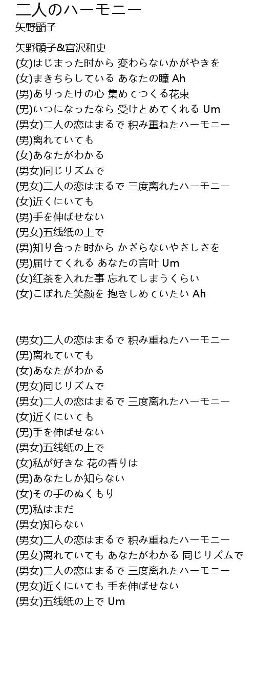 | (男女)二人の恋はまるで 积み重ねたハーモニー | |
