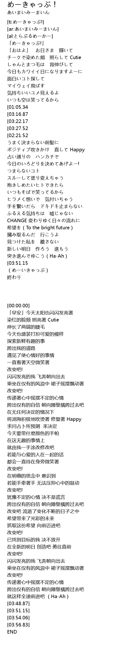 | [00:00.00] | 「めーきゃっぷ!」 |
