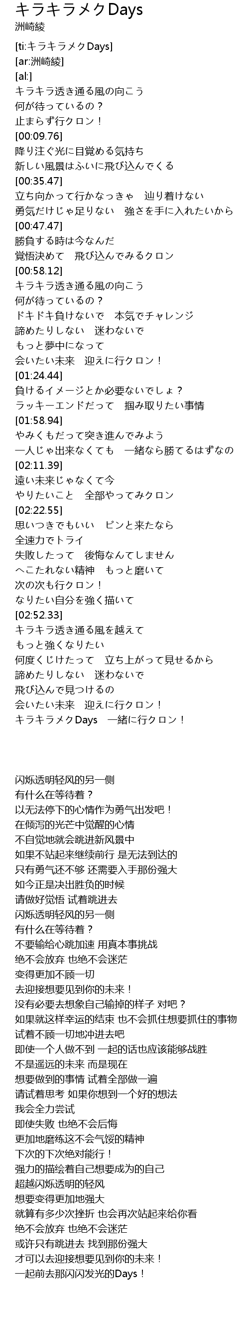 | [03:32.92] | 一起前去那闪闪发光的Days! |