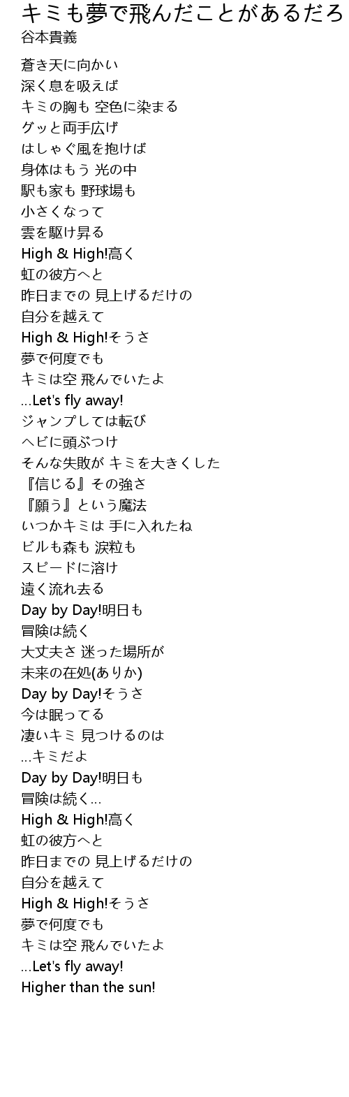 | 歌曲 | キミも夢で飛んだことがあるだろう |